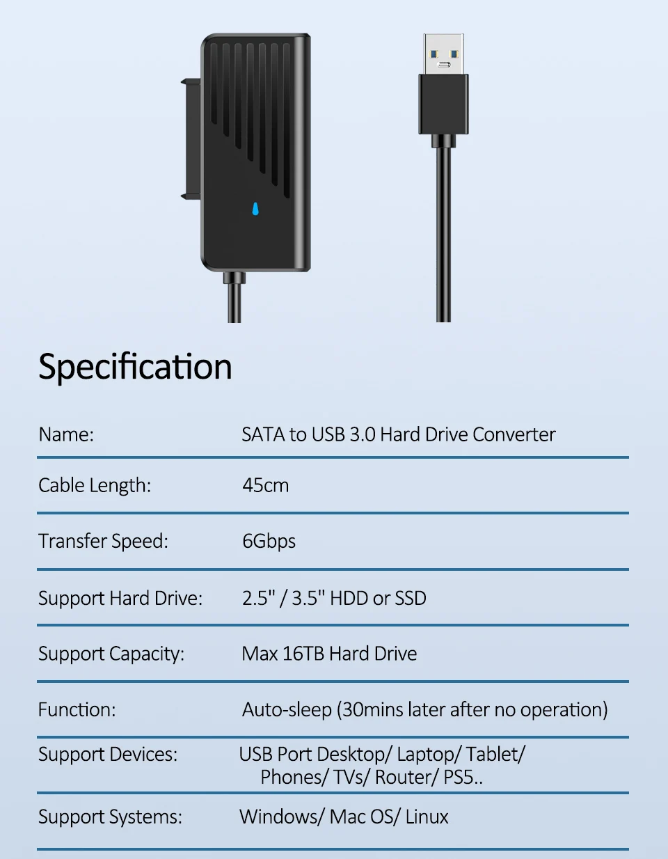 Cabo 45cm:Único disco rígidoCabo, nenhum carregador,Adequado apenas para discos rígidos regulares de 2,5 polegadas
