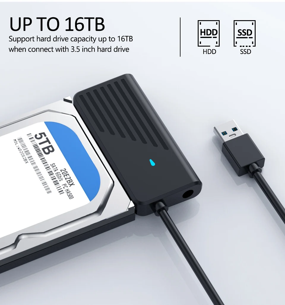 Conecte a fonte de alimentação para garantir a operação estável e facilmente ler 16TB disco rígido.