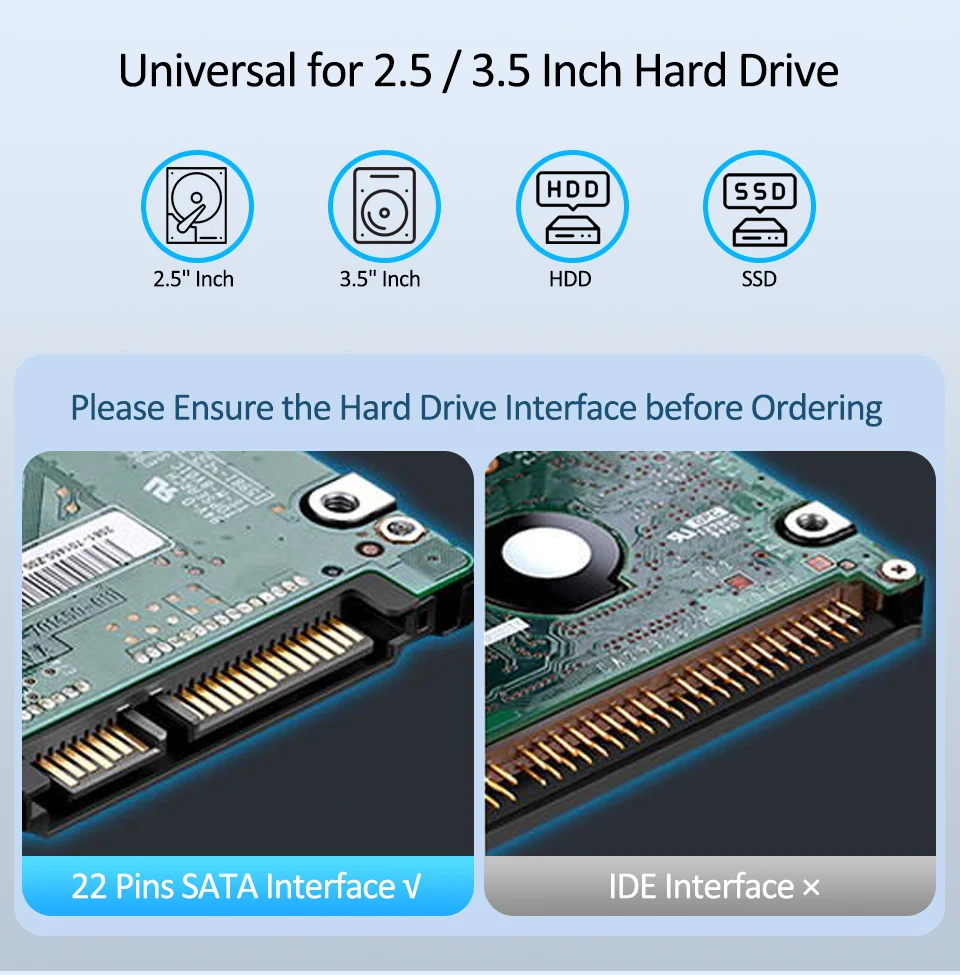Suporte 2.5/3.5 polegadas interface SATA HDD/SSD.
