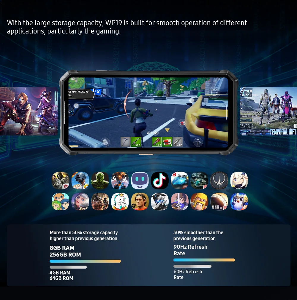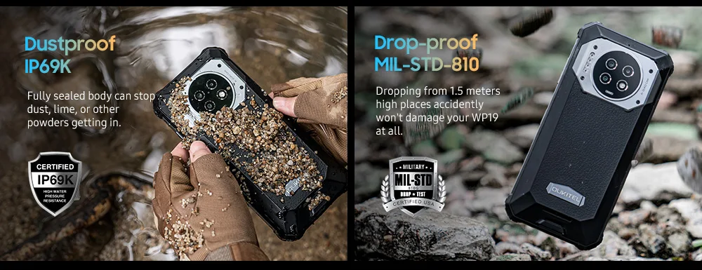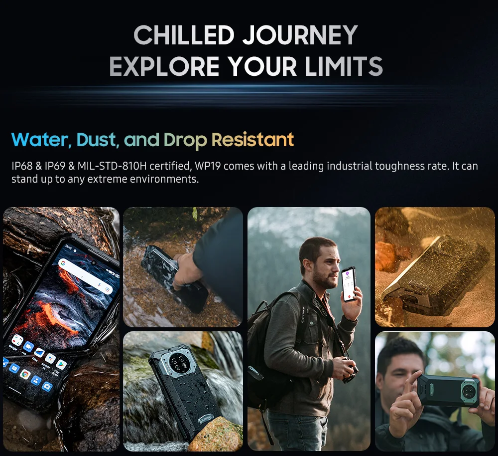 Ip68 & ip69 & MIL-STD-810H certificado, wp19 vem com uma taxa de dureza industrial principal. Pode resistir a todos os ambientes extremos