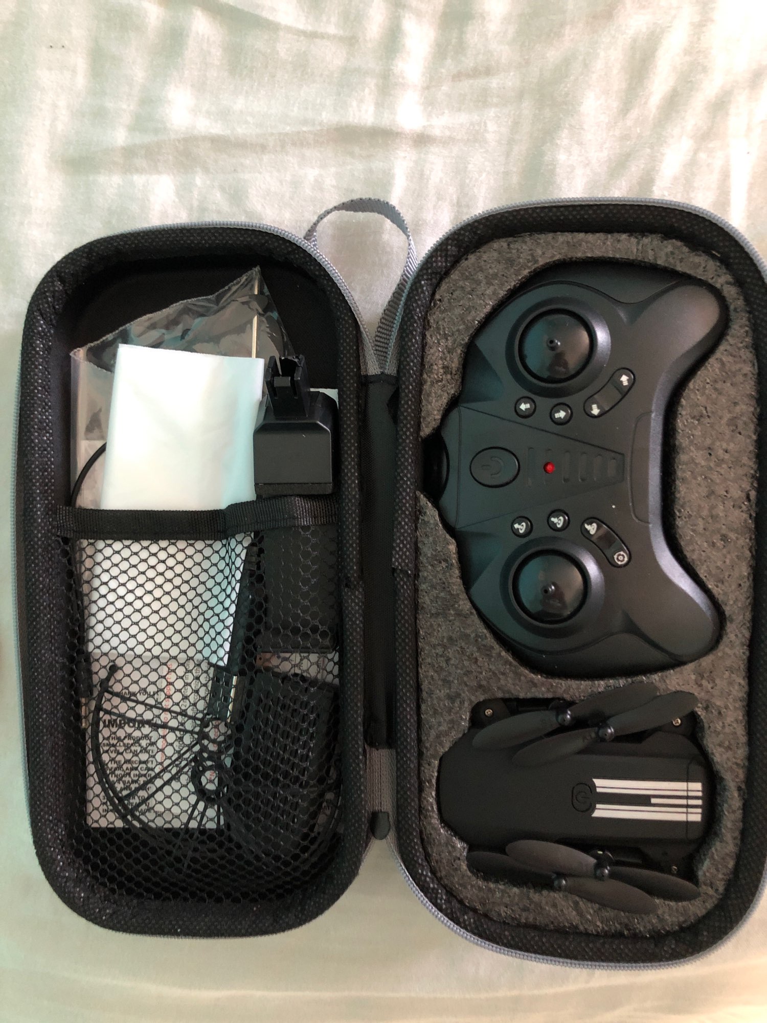 He's home already. A good toy. Good for flying it home. Everything works well also the camera you bring. It's hard to get it to stay at a fixed point. But I'm satisfied with what I paid for. And it arrived earlier than agreed.
