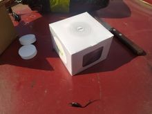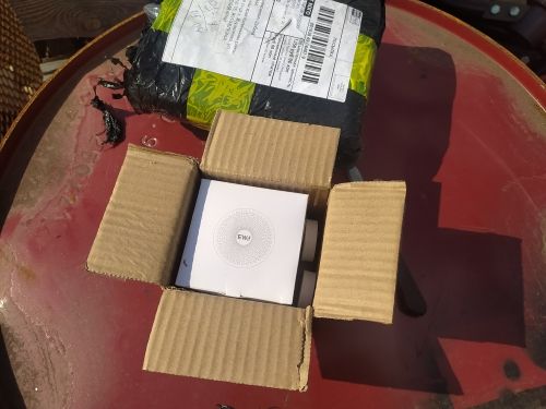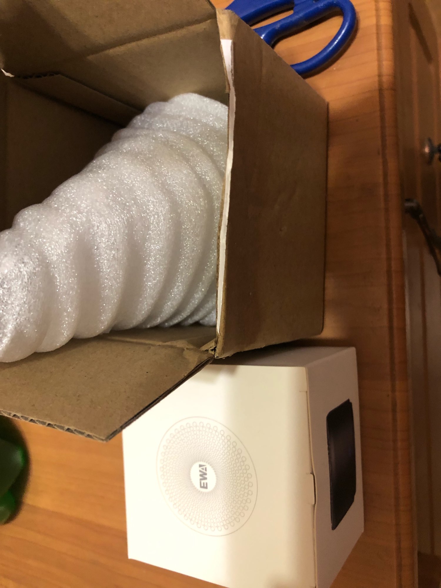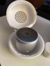 A caixa embalada permite que o alto-falante continue tocando música dentro.