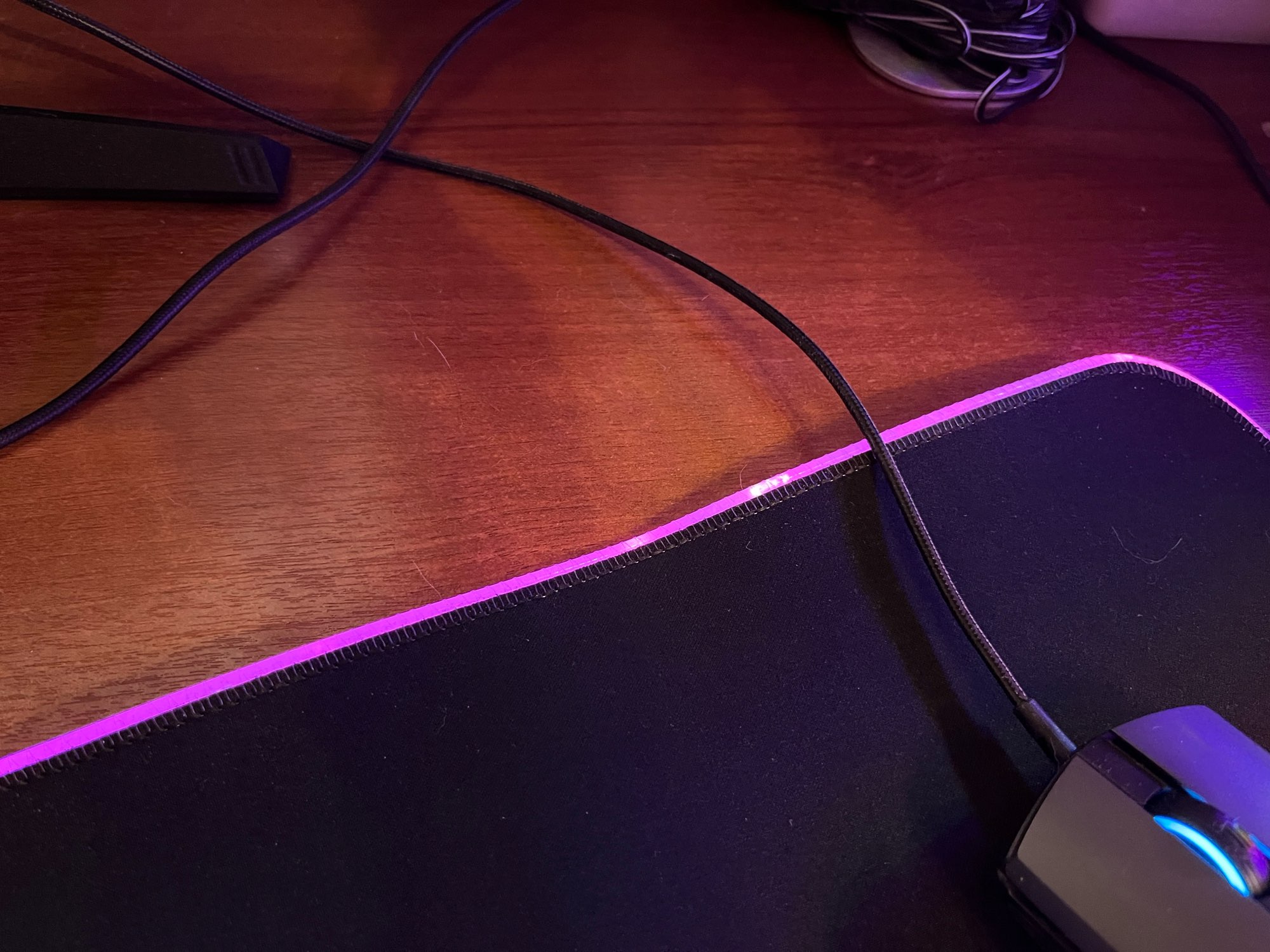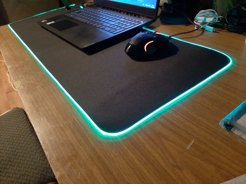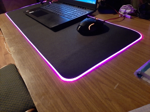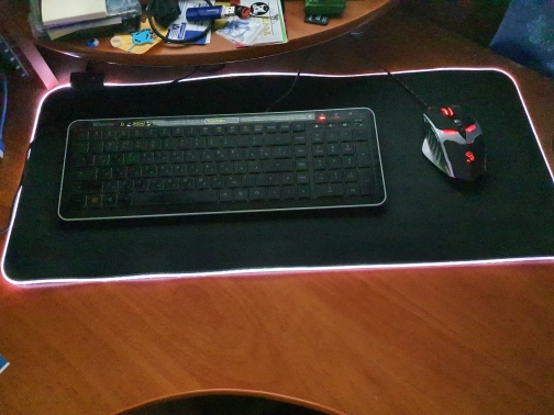Several mode to change colors, put several color that scrolls at the same time or static if you want, cable that tightens to power the pc to the mouse pad quite long, Good diameter to be connected far enough still until the main power supply, agrippe well at the office does not move at all slips well with the mouse I recommend 5 stars